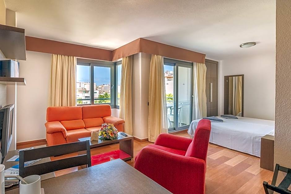 1 bedroom apartment sea view 1 adult is 431 square feet and includes either bunk beds or 2 single beds 80-130 width plus rollaways on demand plus living room and terrace.